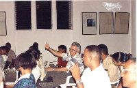 Al explicar el funcionamiento del PAD, desde los dos ambientes empezaron a surgir preguntas sobre la mecánica final y los resultados esperados. Ya te advertí que esto es un proyecto hermoso y complejo a la vez. El intentar generar nuevas formas de trabajo colaborativo apropiándose de este tipo de herramientas pasa por experimentos como este donde se validan los métodos y los contenidos para poder avanzar más allá de las hipótesis que cada uno se ha ido formando a lo largo del camino. Algunas sesiones iniciales de la reunión no tuvieron PAD, fueron las clásicas presentaciones y "puestas en autos" necesarias para comprender la dinámica que viviríamos. Desde el propio inicio se observó la dificultad para sincronizar una CV que reconoce de inmediato que una de las posibilidades a explotar en el trabajo colaborativo y virtual es precisamente la asincronía... Luego empezaron las deliberaciones con base en el DOC-CV. La mecánica consistió en 1) La presentación de lo que arrojó la discusión de la CV con sus consensos, discrepancias, asuntos a resolver (conceptuales u operacionales) y acciones a recomendar. 2) Una posición polémica para estimular la discusión entre los presentes y 3) Una dinámica de facilitación que permitiera al grupo presencial avanzar en algunos aspectos en discusión. El resultado de todo aquello era sintetizado por un equipo (PADout ) que, 15 minutos después, debía ponerlo en la lista para ser analizado por la CV a distancia. Otro equipo (PADIn), se encargaba de recoger las opiniones de "los distantes" y ofrecía un resumen a quienes debatían cara a cara, que podían también hacer sus observaciones, pero que no se enviaban posteriormente a "los distantes". Esa era la lógica, lo racional, de toda aquella movilización. Algunas veces funcionó así, otras mas o menos así y en otras todo fue distinto. Me explico. Alguno o varios de estos ingredientes mencionados pudieron actuar diferente a lo esperado, de allí la medida de proximidad a lo planificado. Un resultado adicional de esta fase del proceso era el establecer criterios para seleccionar proyectos en la región y en estas temáticas que se pudieran apoyar con unos fondos semillas previstos en el presupuesto de Mística. En otras palabras, se trata también de identificar los parámetros para seleccionar algunas aplicaciones pilotos que se pudieran respaldar con un financiamiento y que, por supuesto, se desprendieran de los requerimientos que detectara una comunidad con los intereses definidos de esta CV. No sólo se trata de discutir, hay que hacer también. Otra práctica bastante novedosa fue la de colocar los informes PADin y PADout (¡¡¡por cierto, alguien compuso un merengue sobre el tema con variaciones de samba!!!) en el web. Así se daba la posibilidad a las personas de la CV, o a cualquiera otra persona que quisiera visitar la agenda, de captar una visión rápida (en todos los sentidos) de lo que acontecía en Samaná. Cuando esas cosas funcionan bien nos parecen muy natural y se nos olvidan las muchas reuniones en que participamos y no hemos tenido los documentos de trabajo a tiempo y nos vamos sin tener siquiera la lista de participantes y menos las resoluciones finales que se supone aprobamos...
