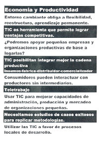 Ahora Por una vez no se pusieron a pedir evaluación al público asistente pero tengo mis antenas receptoras. Puedo reportar que la asistencia fue numerosa y que la gran mayoría no sabía lo que significa "la Internet". Imagínate el reto entonces para llegar a establecer un diálogo sobre el impacto social de la Internet. No se si el público apreció los esfuerzos sinceros, y simpáticos las más de las veces, que se hicieron para transmitir esos conceptos en términos sencillos. No cabe duda que exponerse a tales situaciones es algo que merece respecto y consideración. Me inclino a creer que experiencias como estas mesas redondas aportan a los dos grupos de participantes: a quienes tratan de explicar a personas que no manejan la jerga habitual del medio, y a quienes escuchan a "expertos" intentar mostrarles que finalmente lo que se discute en conciliábulos de elegidos no está muy distante de sus preocupaciones cotidianas y locales. En pocas palabras: después de la PAD trataron la PAP (Participación al Pueblo). ¿Sirvió de algo? El pueblo dirá... Economía y productividad (S9)