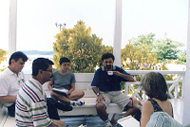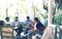 Samaná: Cara a Cara con PAD o ¿Cómo se Come Esto? Para esta etapa se puso en práctica una metodología experimental, diseñada para articular la discusión de una parte de la CV físicamente reunida y debatiendo sobre una agenda determinada, con el resto que está haciéndolo a distancia porque conoce la agenda de la reunión y maneja los materiales y documentos con los cuales se llegó a la reunión presencial. Ahora te lo explico en ciberjerga. Se estableció un agenda para discutir el doc-cv que reguló las actividades de toda la CV. Algunos estuvieron juntos siguiéndola desde Samaná mientras que los demás lo hacían empleando una metodología de participación a distancia (PAD) que se puso a prueba en esta ocasión con una modalidad bastante específica. Como herramienta articuladora, este esquema imponía una sincronización de los tiempos de reflexión y participación de personas distribuidas en varios países de dos continentes. El resultado es de una riqueza que calificaría de multidimensional. El lado humano de organizar algo como esto esconde muchas más cosas de las que podemos ver simple vista. Imagínate seleccionar a unas 20 personas de un grupo de 150 que conforman la CV para que se concentraran a trabajar en un hermoso paraje de Quisqueya, mientras los demás intervenían a distancia. Fueron escogidos de acuerdo a criterios de participación proactiva en la CV, distribución regional equitativa y representación de intereses y puntos de vista diversos. Se hizo lo mejor que se pudo, creo yo. La lista de quienes estuvieron allá la puedes visitar. Ya la mera selección produjo aportes notables, tanto de quienes les tocó asistir como de quienes permanecieron virtuales (revisa los mensajes que llegaron a la CV los días antes del inicio de la reunión). Voy a intentar llevarte de la mano por lo que fueron esos días para esta CV. Como observarás en la agenda y en los otros documentos que te he puesto para que mires (y si de verdad quieres comprender este rollo mejor lo haces, porque si no dudo de que entiendas algo) estuvo todo planificado desde la llegada misma de la gente a Santo Domingo. En los primeros momentos todo se redujo a escarceos de reconocimiento mutuo y de deseos de éxitos en ambos ambientes, presencial y no-presencial. Fíjate que para mi es muy claro que la integración de las dos vivencias es lo que conforma la CV, pero por supuesto que otros no comparten este punto de vista.