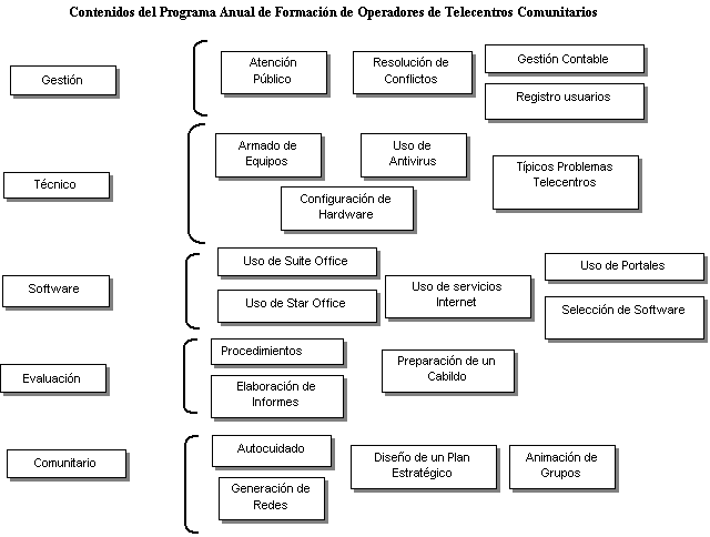 Cinco son los �mbitos que componen el proceso de formaci�n de operadores: Gesti�n, T�cnico, Software y Sistema de Informaci�n, Evaluaci�n y Comunitario.